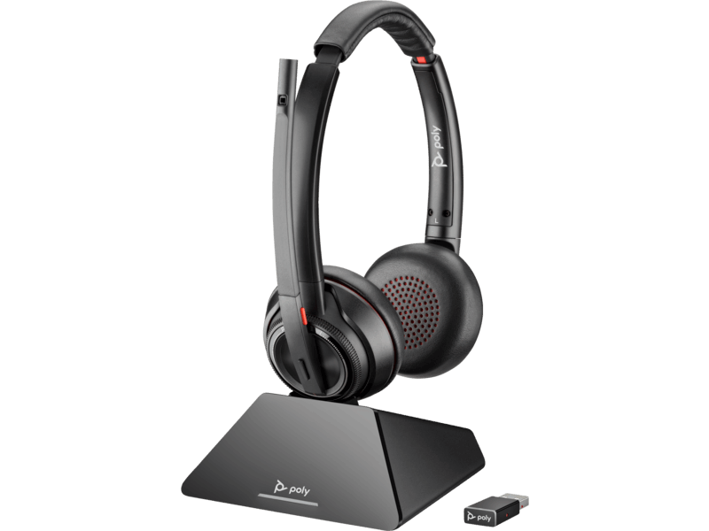 HP POLY SAVI S8220 OTH WIRELESS MS STEREO DECT HEADSET,D200 DONGLE, USB-A, CHARGE STAND