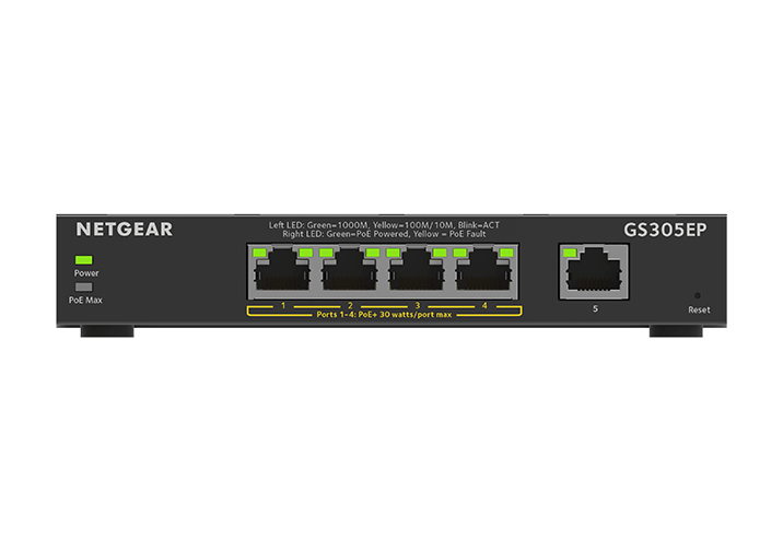 NETGEAR (GS305EP) 5-PORT WEB MANAGED SWITCH, POE+(4) 63W, 5YR