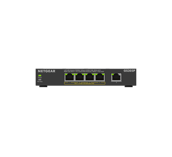 NETGEAR (GS305P) 5-PORT UNMANAGED SWITCH, POE(4) 63W, 3YR